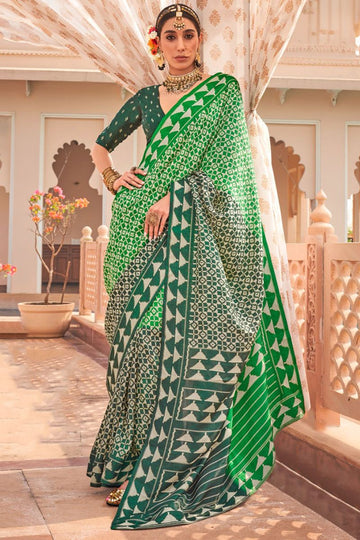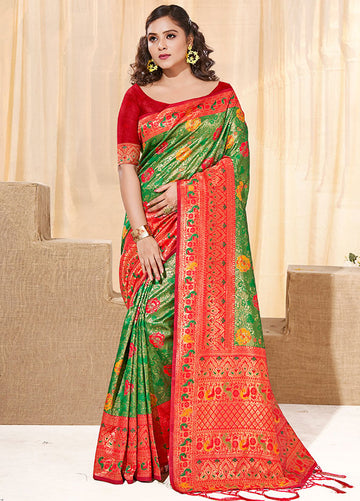 Saree color - Kelly green and bottle green. Fabric - Mercerized silk. Work/Pattern - Patola...