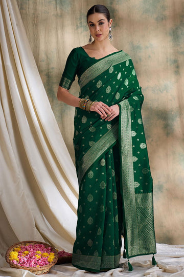Saree color - Kelly green. Fabric - Banarasi silk. Work/Pattern - Zari weaving with stylish...
