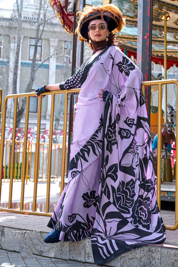 Saree color - Lavender. Fabric - Satin crepe. Work/Pattern - Digital print. Saree Length -...