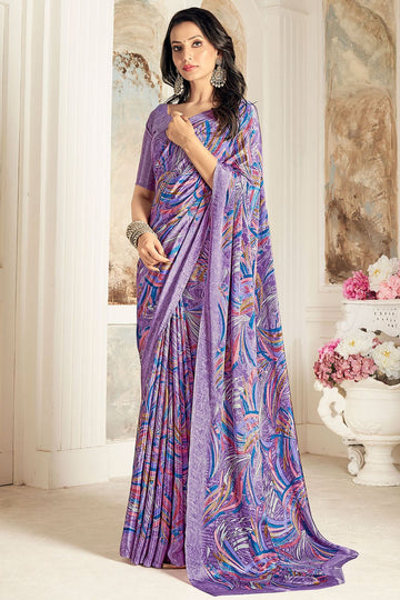 Saree color - Lavender. Fabric - Silk crepe. Work/Pattern - Digital print. Blouse Color -...