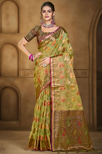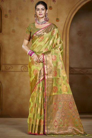 Saree color - Parrot green. Fabric - Organza. Work/Pattern - Jacquard work. Saree Length -...