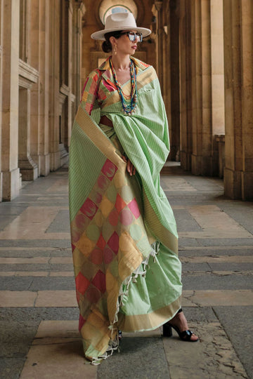 Saree color - Parrot green. Fabric - Soft silk. Work/Pattern - Handloom woven work. Saree...
