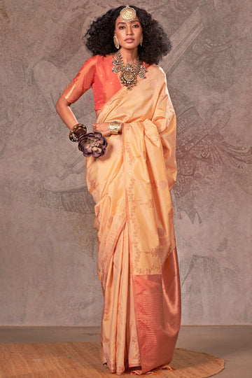 Saree color - Peach. Fabric - Art silk. Work/Pattern - Weaving work. Saree Length -...