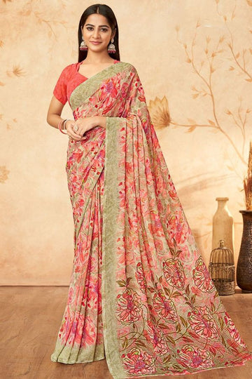 Saree color - Peach. Fabric - Georgette. Work/Pattern - Digital print. Saree Length - 5.50...