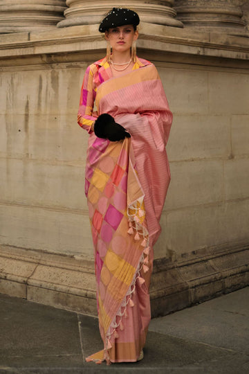 Saree color - Peach. Fabric - Soft silk. Work/Pattern - Handloom woven work. Saree Length...