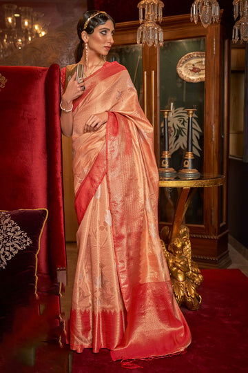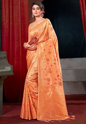 Saree color - Peach. Fabric - Zari tissue with paithani pallu. Work/Pattern - Weaving. Saree...