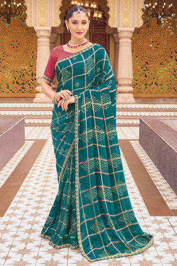 Saree color - Peacock blue. Fabric - Saree : Georgette chiffon ; Blouse : Brocade.....