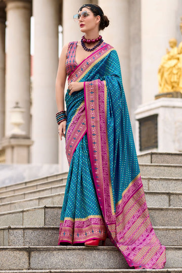 Saree color - Peacock blue. Fabric - Soft banarasi silk. Work/Pattern - Weaving. Saree Length...
