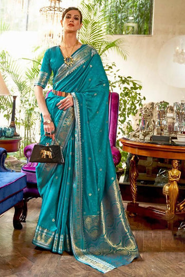 Saree color - Peacock blue. Fabric - Weaving chiffon. Work/Pattern - Floral motifs. Saree Length...