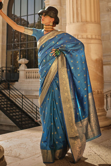 Saree color - Peacock blue. Fabric - Handloom spun silk. Work/Pattern - Weaving. Saree Length...