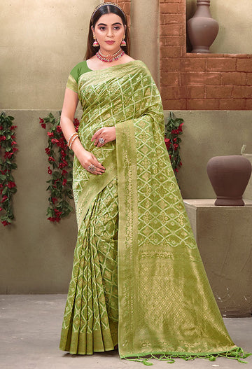 Saree color - Pear green. Fabric - Cotton. Work/Pattern - Zari weaving. Blouse Color -...