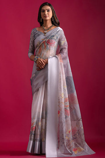 Saree color - Pearl grey. Fabric - Pure satin georgette. Work/Pattern - Digital print. Saree...