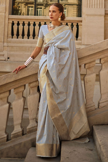 Saree color - Pearl grey. Fabric - Hand woven textured silk. Work/Pattern - Hand woven...