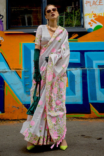 Saree color - Pearl grey. Fabric - Handloom spun silk. Work/Pattern - Weaving. Saree Length...