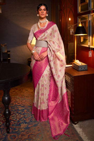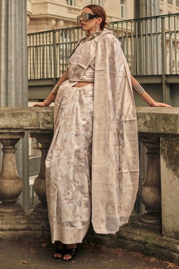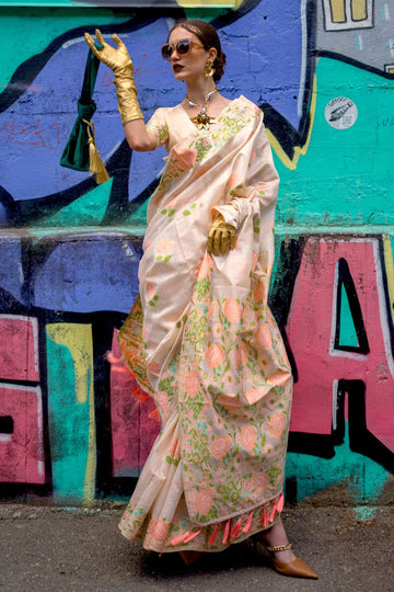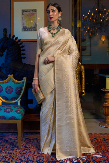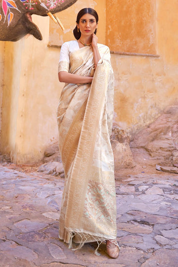 Saree color - Pearl white. Fabric - Hand woven textured silk. Work/Pattern - Hand woven...