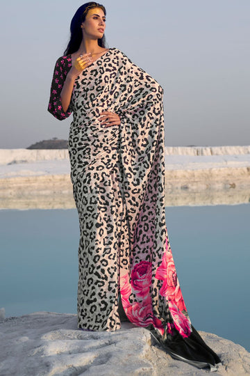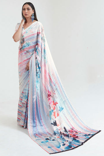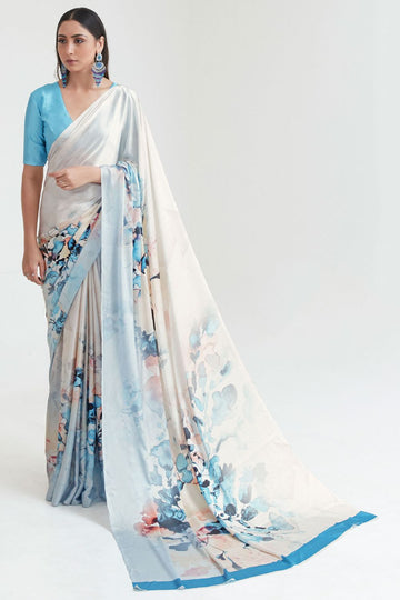 Saree color - Pearl white. Fabric - Satin crepe. Work/Pattern - Digital print. Saree Length...