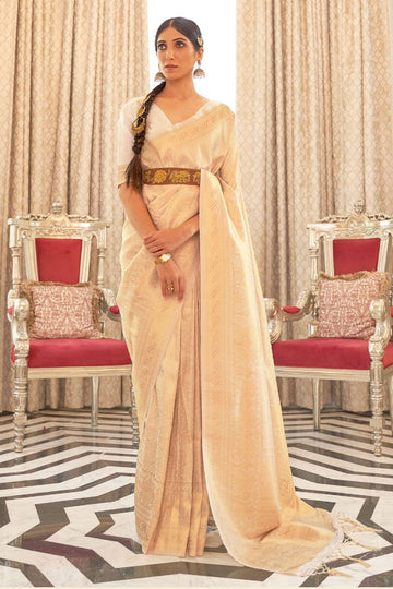 Saree color - Pearl white. Fabric - Modal silk. Work/Pattern - Handloom zari weaving. Saree...
