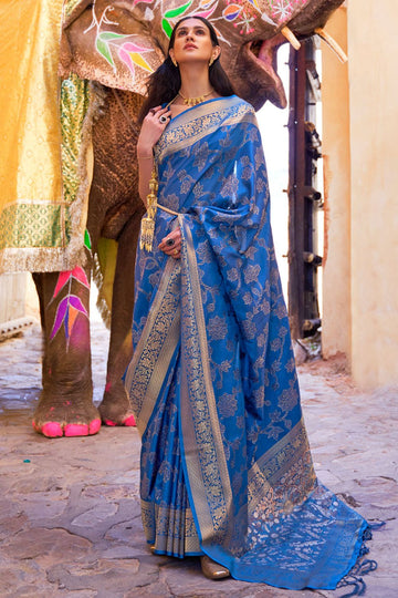 Saree color - Persian blue. Fabric - Soft handloom silk. Work/Pattern - Weaving, sequins and...