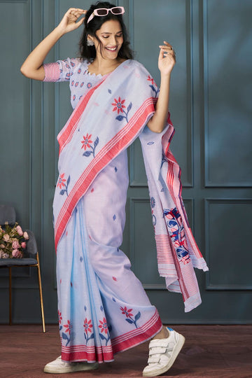 Saree color - Periwinkle. Fabric - Handloom linen. Work/Pattern - Weaving. Saree Length - 5.50...