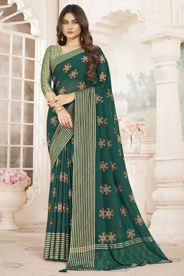 Saree color - Pine green. Fabric - Chiffon. Work/Pattern - Foil print. Saree Length -...