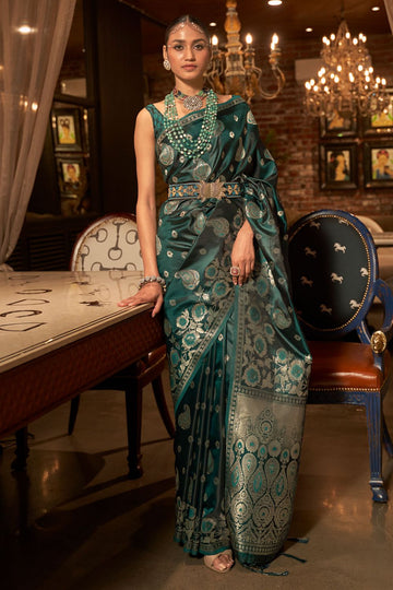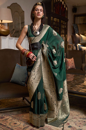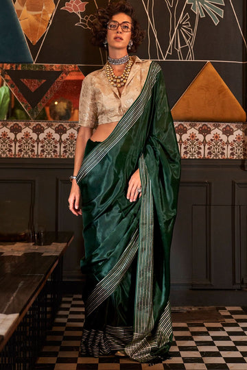 Saree color - Pine green. Fabric - Pure satin silk. Work/Pattern - Handloom banarasi zari...
