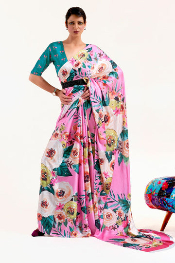 Saree color - Pink. Fabric - Japan satin crepe. Work/Pattern - Digital print. Saree Length...