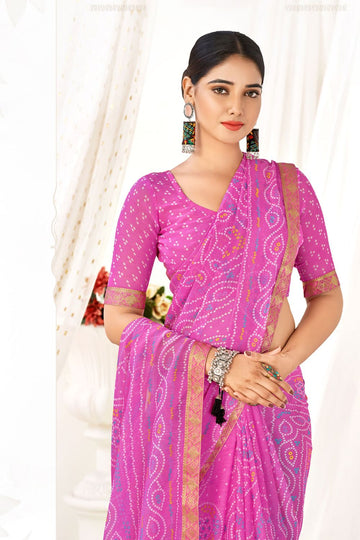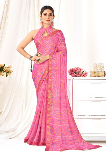 Saree color - Pink. Fabric - Chiffon. Work/Pattern - Printed. Blouse Color - Pink. Saree...