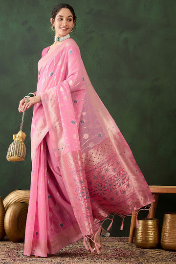 Saree color - Pink. Fabric - Poly cotton. Work/Pattern - Weaving work. Saree Length -...