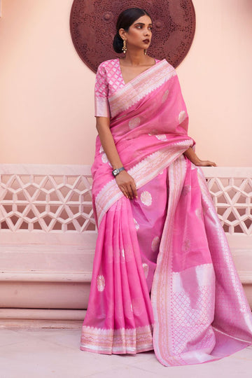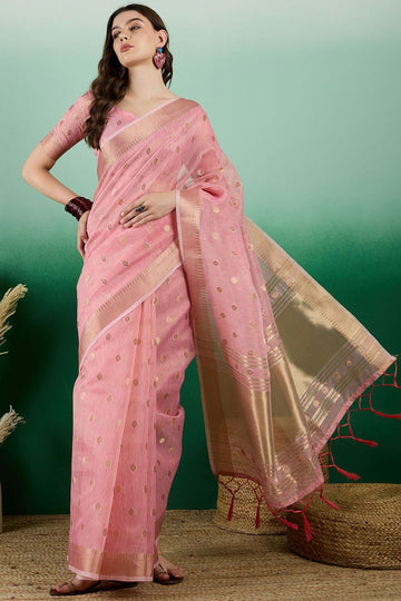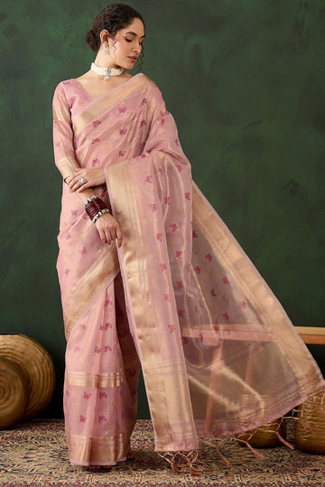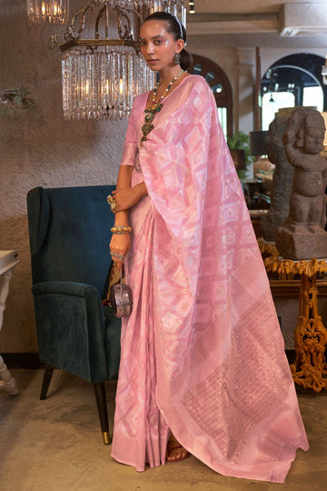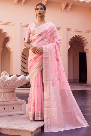 Saree color - Pink. Fabric - Jacquard khadi organza. Work/Pattern - Weaving work. Saree Length...