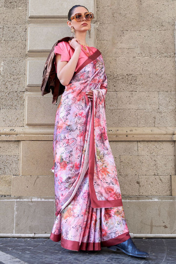 Saree color - Pink. Fabric - Satin crepe. Work/Pattern - Printed. Saree Length - 5.50...