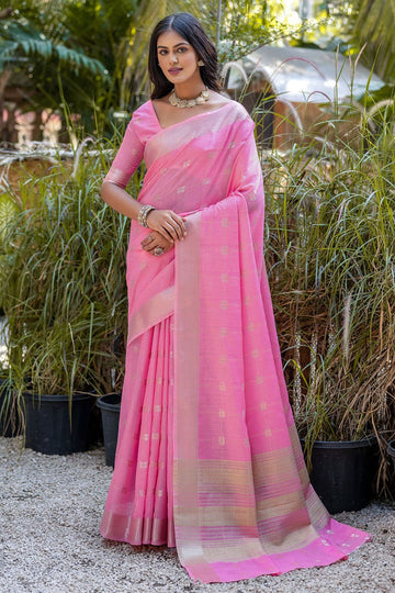 Saree color - Pink. Fabric - Pure linen. Work/Pattern - Handloom woven work. Saree Length...
