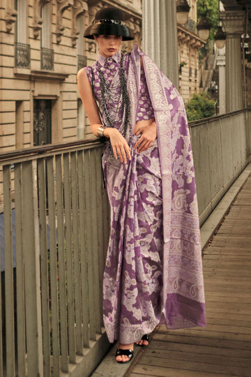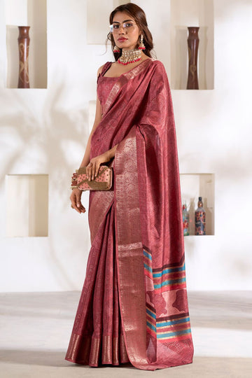 Saree color - Dusty magenta. Fabric - Organza. Work/Pattern - Chikankari zari lucknowi handloom weaving....
