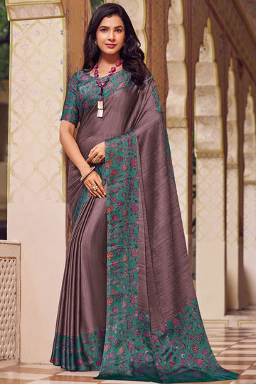 Saree color - Dusty grey. Fabric - Mercerized sigma silk. Work/Pattern - Printed with aqua...