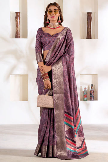 Saree color - Dusty mauve. Fabric - Soft dola silk. Work/Pattern - Foil print. Saree...