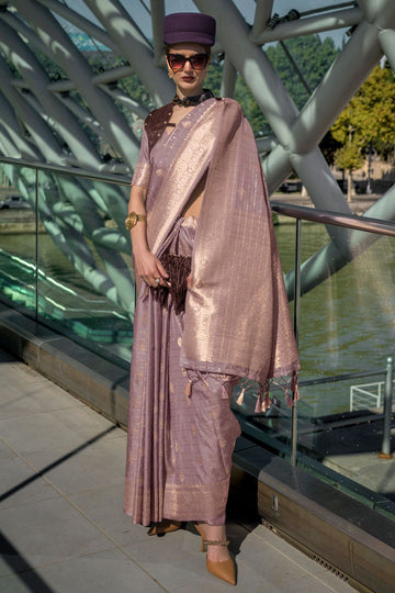 Saree color - Dusty mauve. Fabric - Katan silk. Work/Pattern - Handloom weaving. Saree Length...