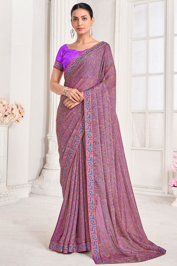 Saree color - Dusty pink. Fabric - Chiffon. Work/Pattern - Digital printed with lace border...