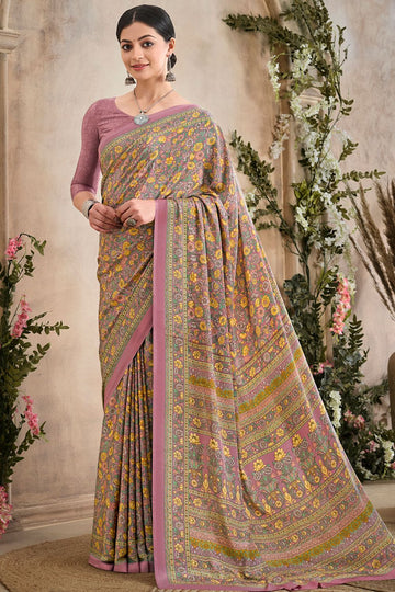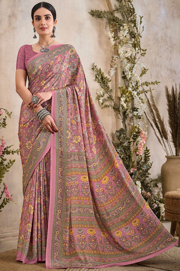 Saree color - Dusty pink. Fabric - Silk crepe. Work/Pattern - Digital print. Blouse Color...