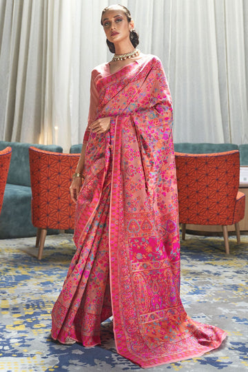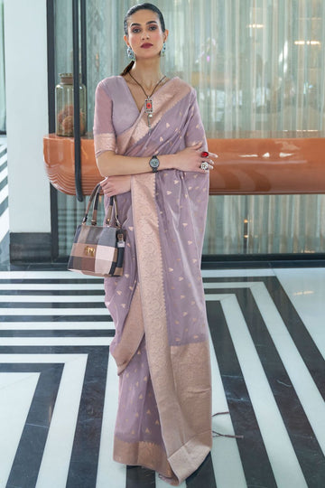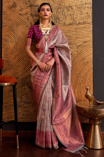 Saree color - Dusty pink. Fabric - Handloom weaving silk. Work/Pattern - Zari woven work....