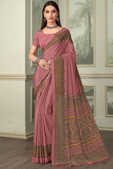 Saree color - Dusty pink. Fabric - Silk crepe. Work/Pattern - Digital print. Saree Length...
