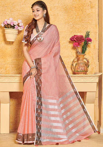 Saree color - Dusty pink. Fabric - Linen. Work/Pattern - Woven work. Blouse Color -...