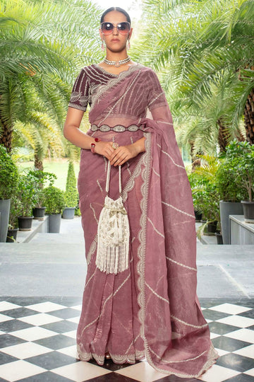 Saree color - Dusty pink. Fabric - Saree : Organza ; Blouse : Silk. Work/Pattern...