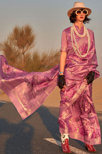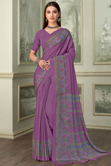 Saree color - Dusty purple. Fabric - Silk crepe. Work/Pattern - Digital print. Saree Length...