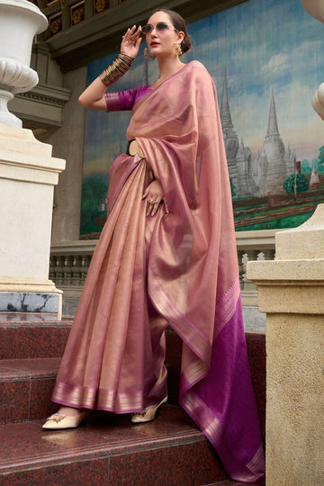 Saree color - Dusty pink. Fabric - Soft tissue silk. Work/Pattern - Weaving. Saree Length...