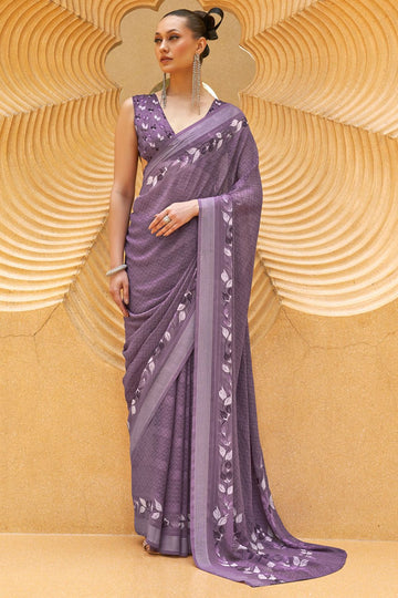 Saree color - Dusty purple. Fabric - Georgette. Work/Pattern - Printed. Saree Length - 5.50...