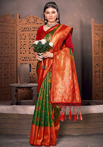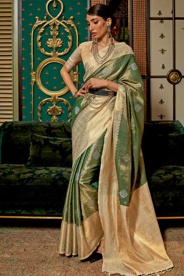 Saree color - Forest green. Fabric - Kanjivaram silk. Work/Pattern - Weaving. Blouse Color -...