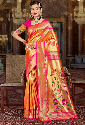 Saree color - Golden orange. Fabric - Paithani silk. Work/Pattern - Weaving. Blouse Color -...