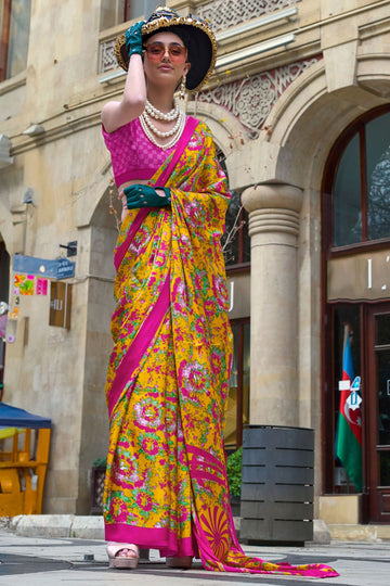 Saree color - Golden yellow. Fabric - Satin crepe. Work/Pattern - Digital print. Saree Length...