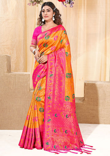Saree color - Golden yellow. Fabric - Silk. Work/Pattern - Weaving. Saree Length - 5.50...
