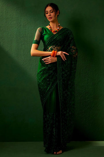 Saree color - Green. Fabric - Net. Work/Pattern - Embroidery work. Saree Length - 5.50...