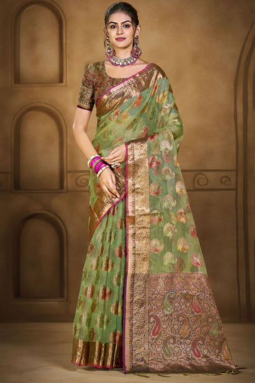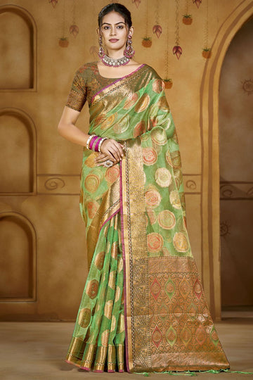 Saree color - Green. Fabric - Organza. Work/Pattern - Jacquard work. Saree Length - 5.50...